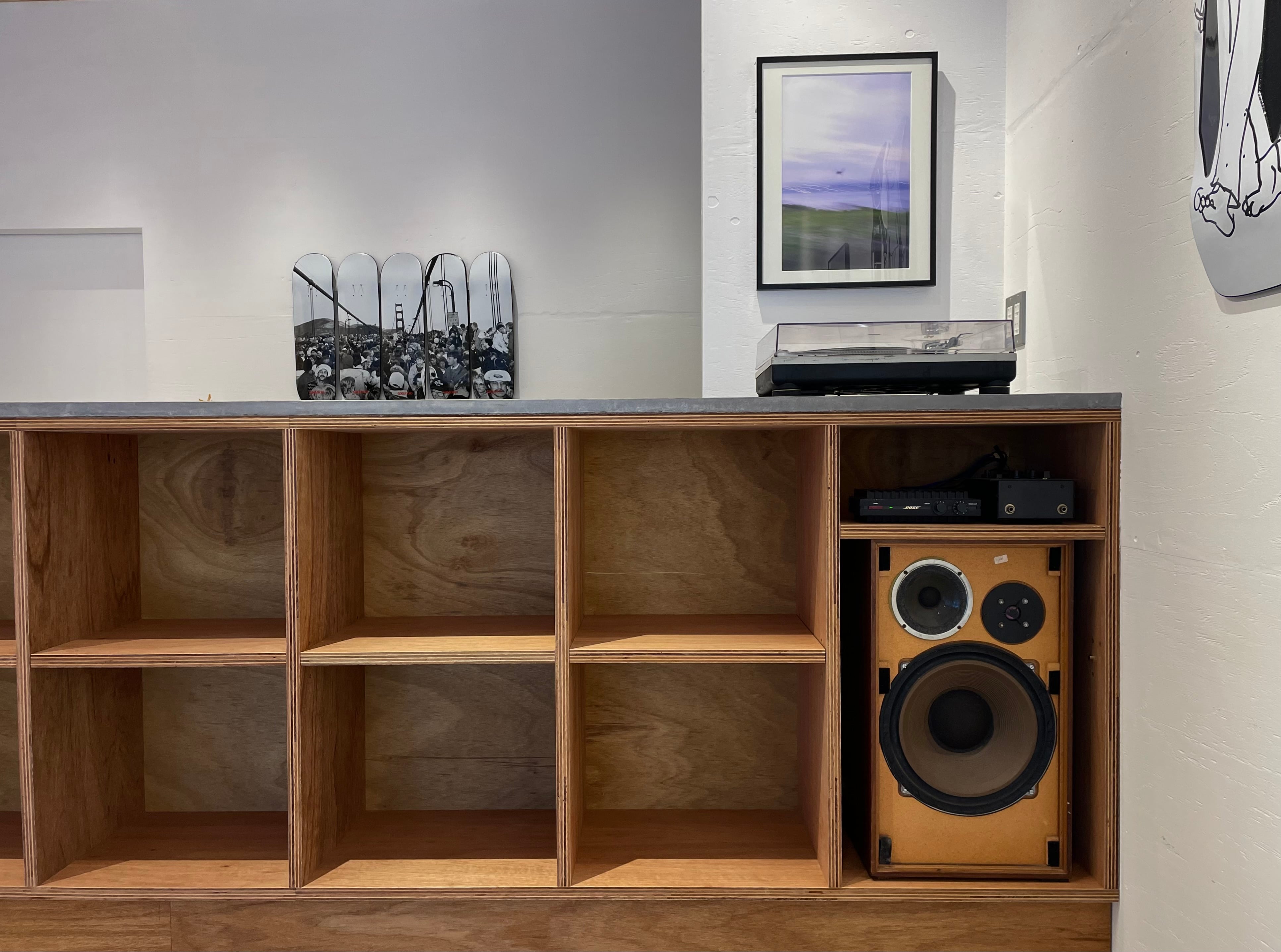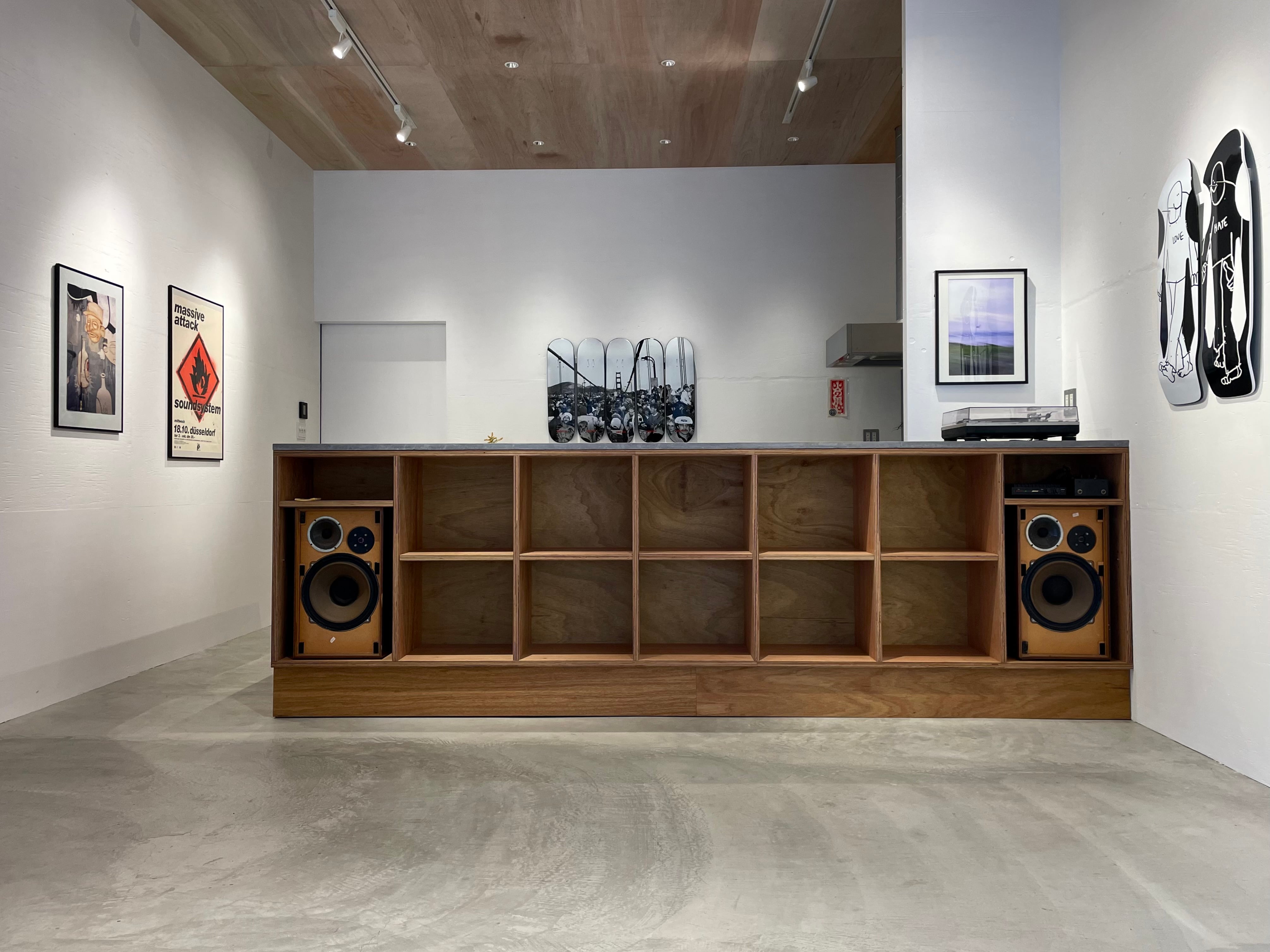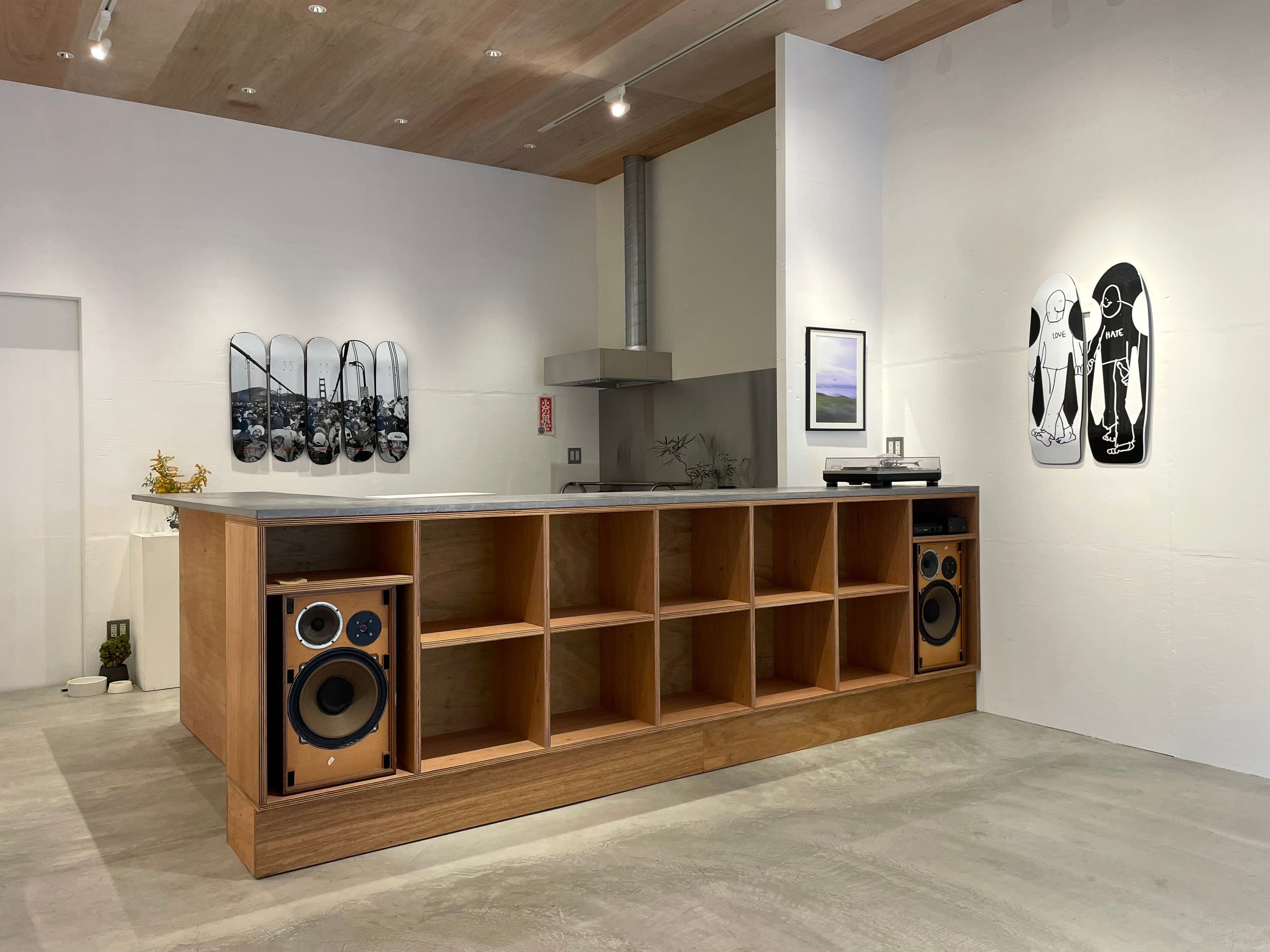 既存のスケートショップに新たに併設されたギャラリーショップのカウンターを製作させて頂きました。