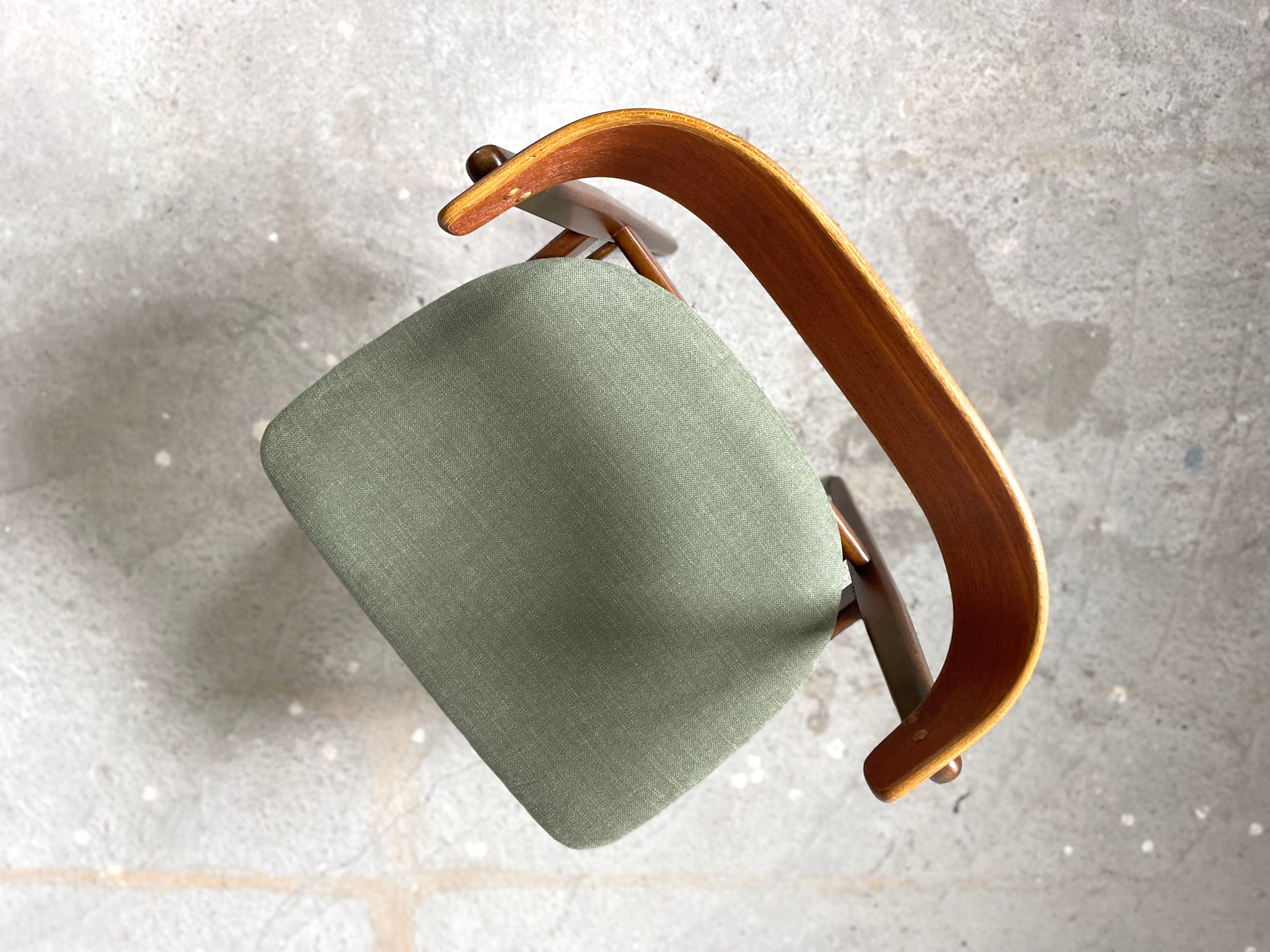 張替で内部ウレタンも交換済み。ファブリックは落ち着いたグリーンをチョイス。