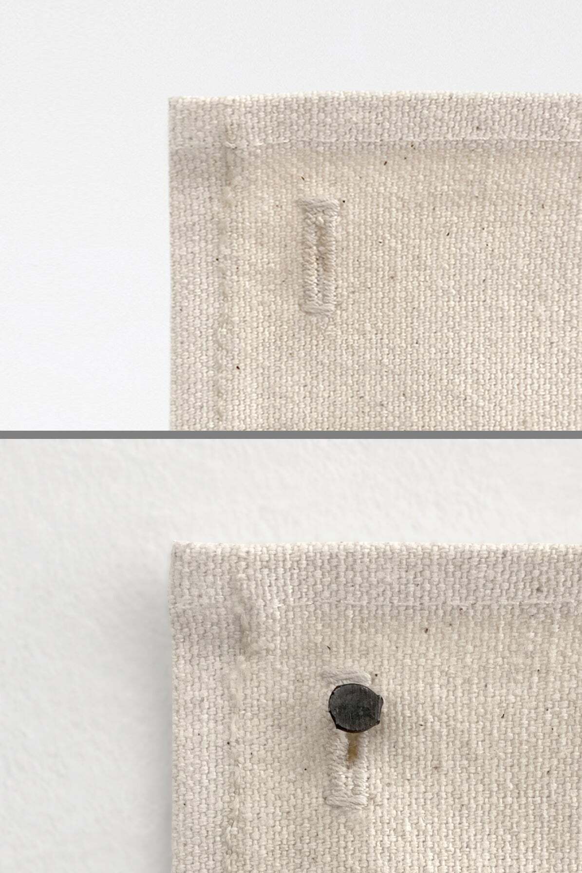 キャンバスに直接プリントされていて上部の角2点にホール加工がございますので画鋲などですぐに飾っていただけます。